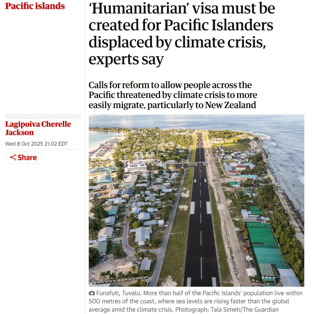 A recent Guardian article titled “‘Humanitarian’ visa must be created for Pacific Islanders displaced by climate crisis, experts say” is pushing the familiar alarmist narrative: Rising seas are swallowing low-lying island nations like Tuvalu and Kiribati, forcing mass migration and requiring new humanitarian visas for “climate refugees” to relocate to Western countries.