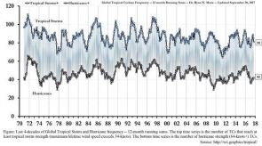 Indeed, extreme climate events are becoming neither more intense nor more frequent. Diagnostic tools that chart the frequency and intensity of tropical cyclones globally and regionally — such as their number and the energy associated with them — show a cyclic pattern to hurricane activity but no long-term trend.