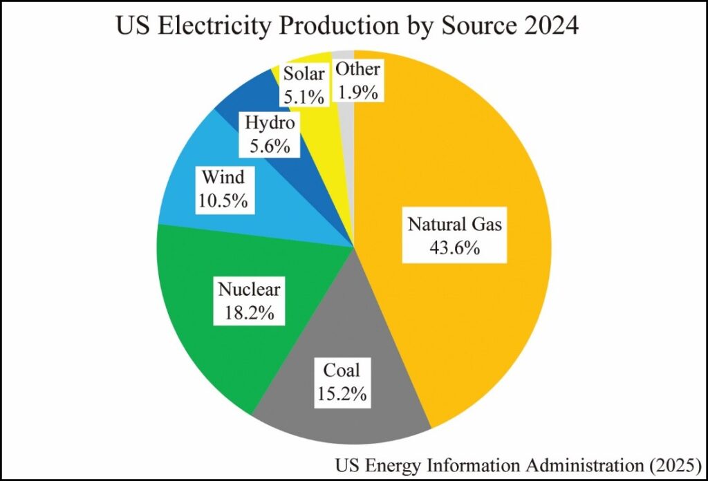 Along with federal cutbacks, the artificial intelligence (AI) revolution now drives the nation’s power system, interrupting the renewable electricity transition. Microsoft, Meta, Google, Amazon, and other giant firms are building new data centers and upgrading existing data centers to power AI. AI processors run 24-hours a day for months to enable computers to think like humans. When servers are upgraded to support AI, they consume 6 to 10 times more power than when used for cloud storage and the internet. Data centers consumed 4% of US electricity at the start of 2024 but are projected to consume 20% within the next decade.